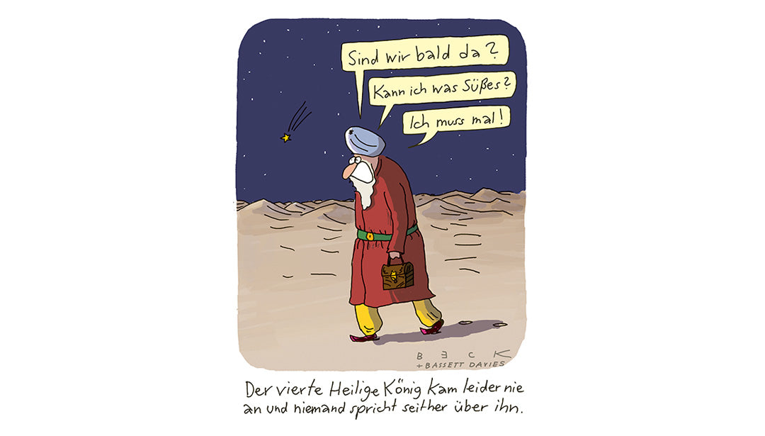 Cartoonist BECK über den vierten der Heiligen Drei Könige, die Absolution, regionales Essen oder den Energie-Umsatz von Vätern.