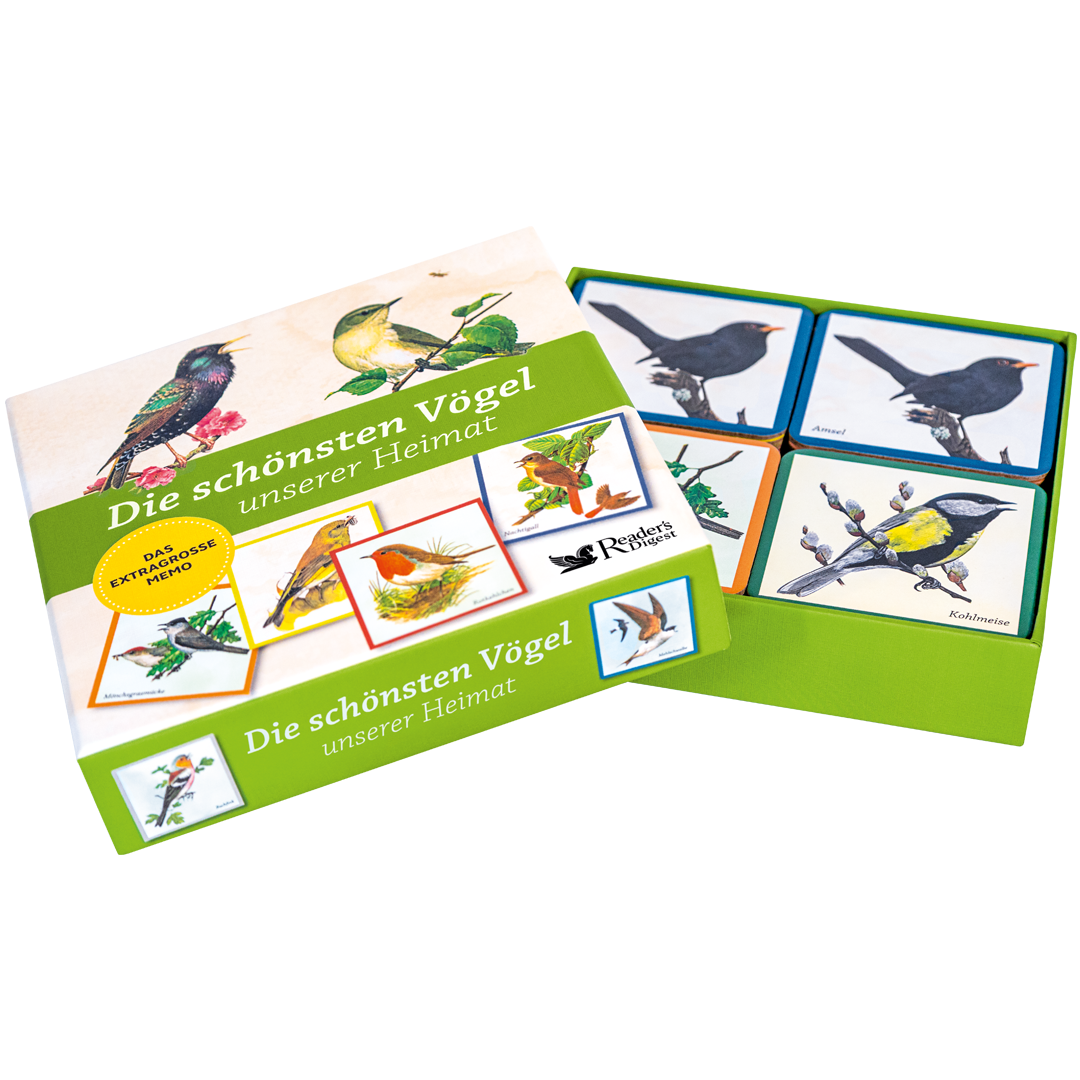 Dazu liefert ein Infoblatt mit einem kompakten Vogellexikon spannende Kurzporträts aller 30 auf den Memo-Karten vorgestellten Vogelarten. So wird erklärt, wie der Girlitz brütet, was den Eichelhäher so lautstark macht oder welche Nahrung der Feldsperling bevorzugt. Und jede Karte lädt zum Staunen ein und macht Lust, mehr über unsere gefiederten Nachbarn zu erfahren.