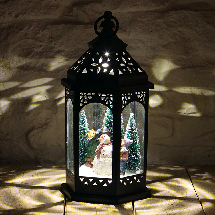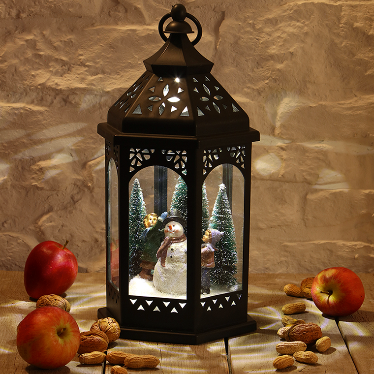 Große LED-Laterne mit Schneemann