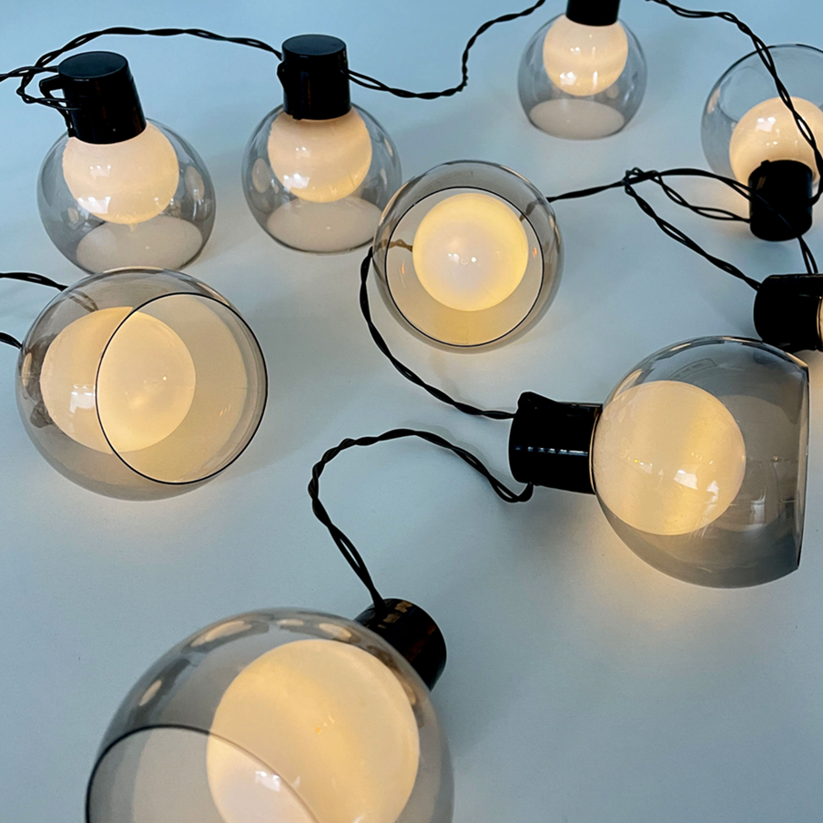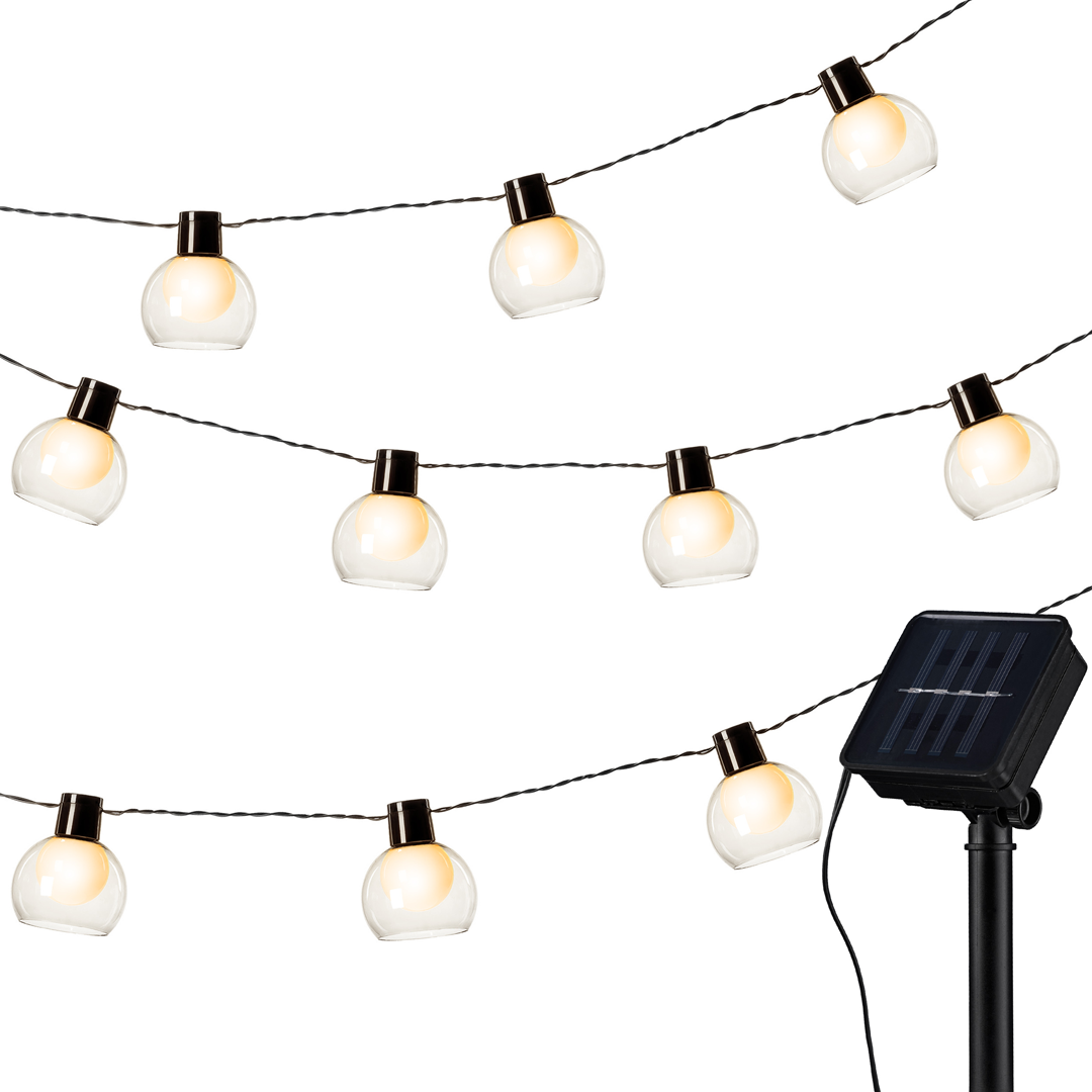 Schaffen Sie eine gemütliche Atmosphäre mit der LED-Solar-Lichterkette für Garten, Balkon oder Terrasse. Dank des integrierten Solarmoduls lädt sich die Lichterkette tagsüber automatisch auf und leuchtet bei Einbruch der Dunkelheit. Die 10 warmweißen LEDs mit stilvollen Lampenschirmen in Rauchglasoptik sorgen für ein angenehmes, harmonisches Licht.