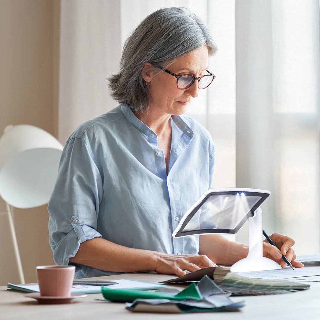 Diese kabellose LED-Leselupe mit stabilem Standfuß werden Sie nicht mehr missen wollen, denn sie erleichtert Ihnen so vieles im Alltag! Fällt Ihnen das Lesen kleiner Schriften immer schwerer? Ermüden Ihre Augen bei filigranen Arbeiten? Die LED-Leselupe vergrößert jedes Detail um bis zu 300 % und bietet Ihnen dank der XXL-Linse mit 2 LED-Lichtern ein viel größeres Sehfeld als herkömmliche Lupen. Sie können ohne Probleme das Kleingedruckte lesen, basteln oder sogar eine Nadel einfädeln. Außerdem sorgen die LEDs für eine klare, scharfe Sicht – selbst bei schlechten Lichtverhältnissen.