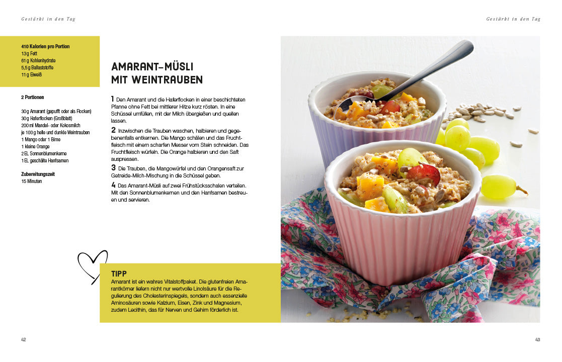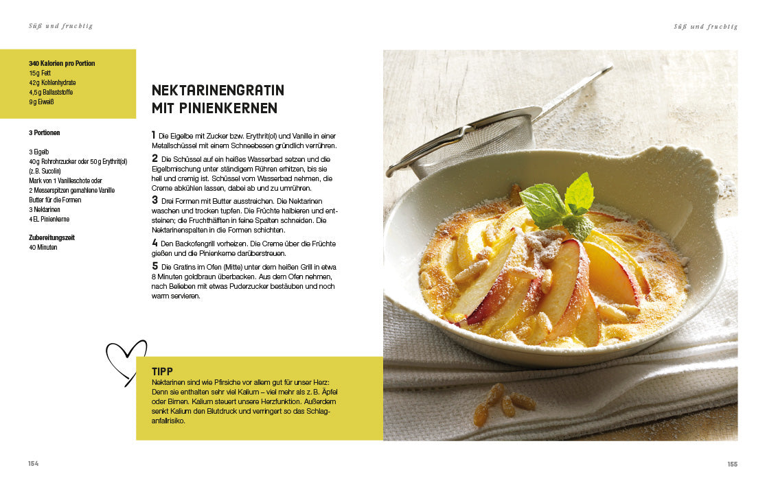 Ob herzhafte Suppen, leichte Hauptgerichte oder raffinierte Desserts: Die Vielfalt an ballaststoffreichen und herzfreundlichen Zutaten sorgt für eine gesunde und leckere Ernährung im Alltag. Mit einfachen Schritt-für-Schritt-Anleitungen gelingen alle Rezepte im Handumdrehen – vom Schweinefilet mit Birnen und Estragon bis hin zur Avocado-Schoko-Mousse mit fruchtigen Kirschen.