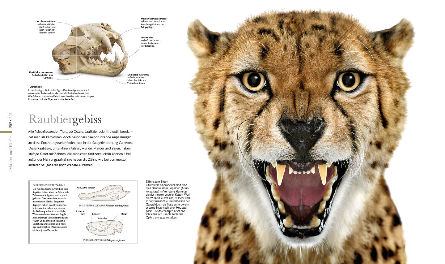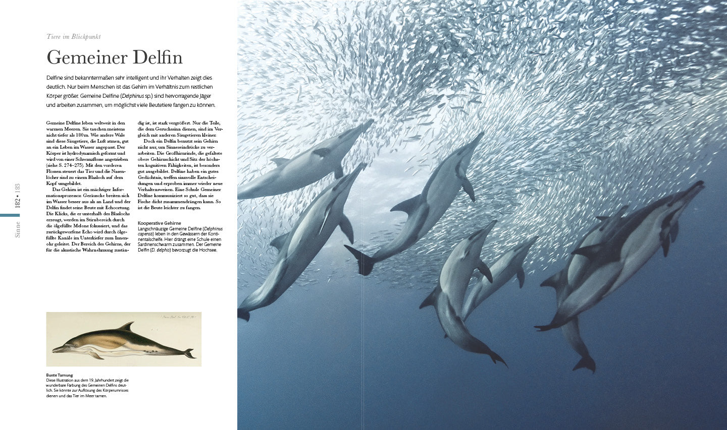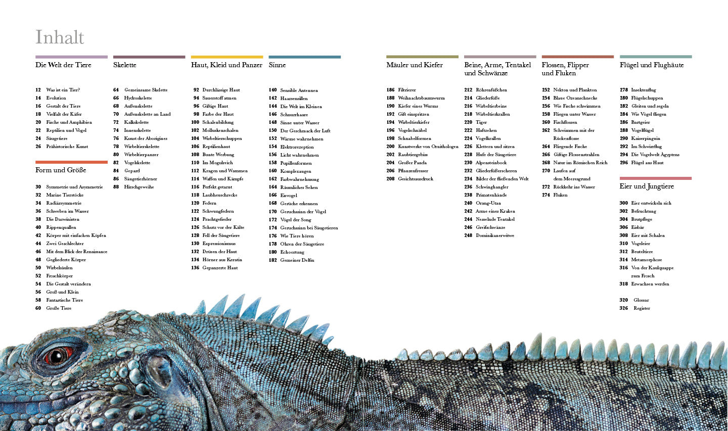 Mit »Die fantastische Welt der Tiere« tauchen Sie ein in eine visuell beeindruckende Entdeckungsreise durch die Natur. Dieses bildgewaltige Tierbuch zeigt Ihnen die faszinierende Anatomie, die Sinne und das Verhalten von Tieren auf eine völlig neue, spannende Art. Grandiose Detailaufnahmen, präzise Schaubilder und verblüffende Fakten sorgen dafür, dass selbst Kinder mühelos verstehen, warum Quallen nicht ziellos durchs Wasser treiben oder wie Geparden Geschwindigkeiten von bis zu 100 km/h erreichen.