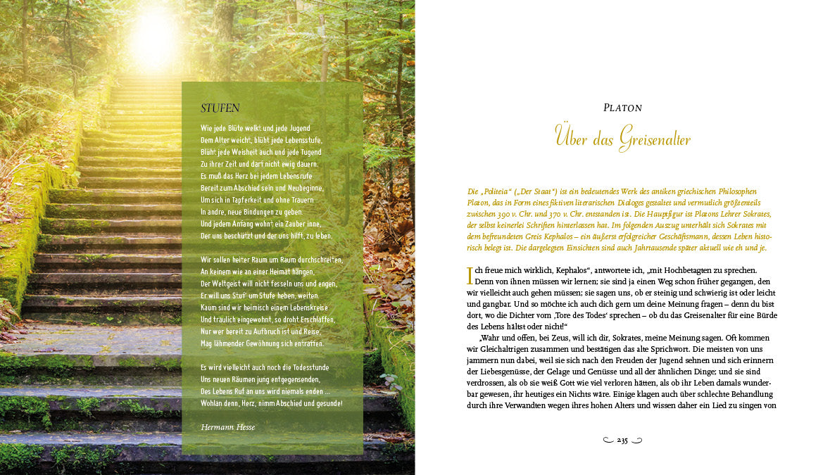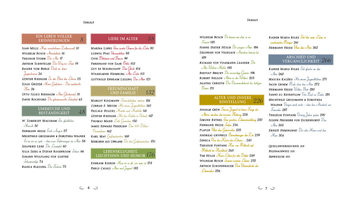 Autoren wie Goethe, Laotse, Anselm Grün oder Seneca spenden Trost, ermutigen zum Loslassen und erinnern daran, dass in jedem Lebensalter Schönheit und Sinn zu finden sind. Besonders als Geschenkidee für Senioren bietet sich dieses Buch an: liebevoll gestaltet, tiefgründig und inspirierend.