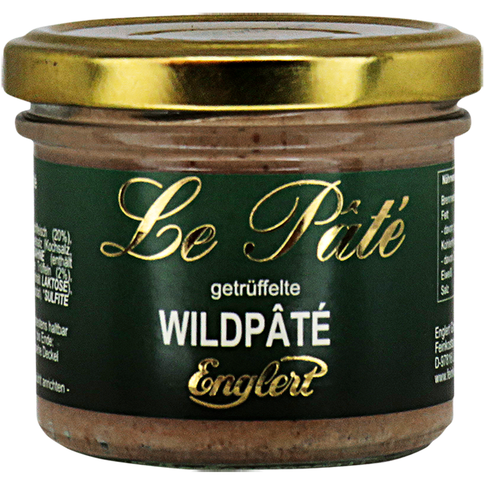 Zutaten: Hirschfleisch (30%), Schweinefleisch (27%), Wildfond (Wasser, Hirschfleisch), SAHNE, EIER, Rotwein (enthält SULFITE), Sommertrüffeln (1%), Weinbrand (enthält SULFITE), Gewürze, MILCHEIWEISS, Nitritpökelsalz (Kochsalz, Konservierungsstoff: Natriumnitrit), jodiertes Speisesalz (Speisesalz, Kaliumjodat), Ascorbinsäure: Natriumascorbat.