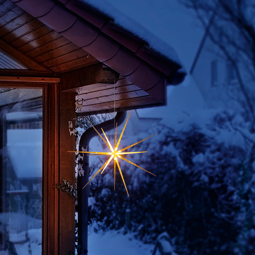 Schmücken Sie Ihr Heim zur Vorfreude auf das kommende Weihnachtsfest mit diesen wunderschönen, festlich leuchtenden Sternen. Sie erhalten hier gleich zwei LED-Sternleuchten im Set. Beide Leuchten können sowohl in den Innenräumen wie auch im – gut geschützten – Außenbereich verwendet werden (unter einer überdachten Terrasse oder einem ebenso geschützten Balkon beispielsweise).