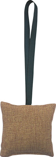 2 Duft-Pads, je ca. 8 x 8 cm, je mit natürlicher Kräuter-Blüten-Füllung (20 g) und je mit ca. 15 cm langer Schlaufe zum Aufhängen.