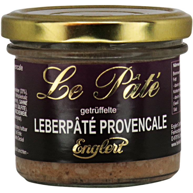 Zutaten: Schweinefleisch (50%), Schweineleber (20%), Fleischbrühe (Wasser, Schweinefleisch, Nitritpökelsalz (Kochsalz, Konservierungsmittel Natriumnitrit)), SAHNE, EIER, Wermuth (enthält SULFITE), schwarze Trüffeln (2%), Antioxidationsmittel: Natriumascorbat, Kräuter der Provence (0,1%), Gewürze, MILCHEIWEISS, jodiertes Speisesalz (Speisesalz, Kaliumjodat).