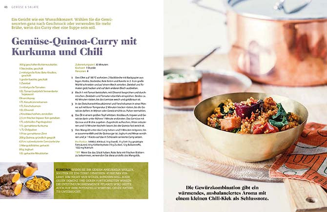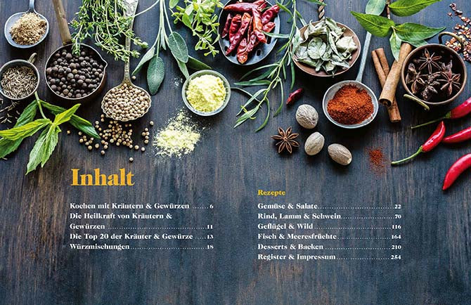 Salz und Pfeffer sind die Klassiker im Gewürzregal. Doch erst Kräuter und Gewürze sorgen für ein aromatisches Geschmackserlebnis, das jedem Gericht eine besondere Note verleiht. Und das mit einer positiven Wirkung auf die Gesundheit: Denn Kräuter und Gewürze sind eine ausgezeichnete Quelle für Mineralstoffe, Vitamine und Antioxidantien und dienen der natürlichen Heilung. Deshalb dürfen Gewürzpflanzen und Küchenkräuter in einer gesunden und ausgewogenen Ernährung nicht zu kurz kommen. Lernen Sie in diesem Kochbuch die vielfältige Welt der Kräuter kennen! Freuen Sie sich auf rund 150 überwiegend bebilderte Rezepte für Salate, Hauptspeisen mit Fleisch, Fisch und Geflügel, vegetarische Gerichte, Süßes und Desserts. Erfahren Sie in »Ingwer, Basilikum, Knoblauch & Co.« alles Wissenswerte zu Herkunft, Auswahl, Lagerung und zur Heilwirkung von Kräutern.