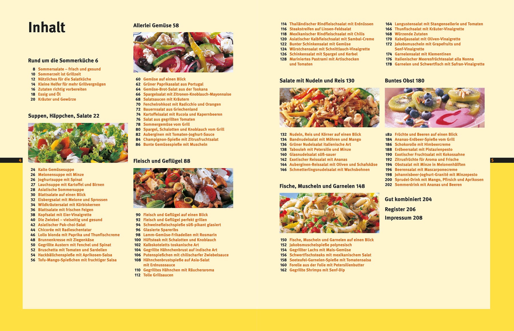 knackige Salate, kalte Suppen oder himmlische Desserts – »Grillvergnügen & Salatgenuss« zeigt Ihnen auf 208 Seiten und mit leicht verständlichen Rezept-Anleitungen, wie alles garantiert gelingt. Von vegetarischen Tofuspießen über Steaks bis zu fruchtigen Genüssen und von leichten Blattsalaten über Reis- und Nudelsalate bis zu Salaten mit Fleisch und Fisch finden Sie hier fast grenzenlose Auswahl.