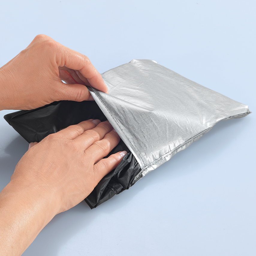 Ob im Frühling gegen Pollen, im Sommer gegen Hitze, im Herbst gegen Laub oder im Winter gegen Frost – diese magnetische Scheibenabdeckung sorgt das ganze Jahr über für freie Sicht. Sieben integrierte Magnete fixieren die Abdeckung sicher auf der Scheibe. Nach dem Einsatz lässt sie sich platzsparend in der angenähten Tasche verstauen. Die umweltfreundliche Verpackung aus recyceltem Material rundet das Produktkonzept ab.