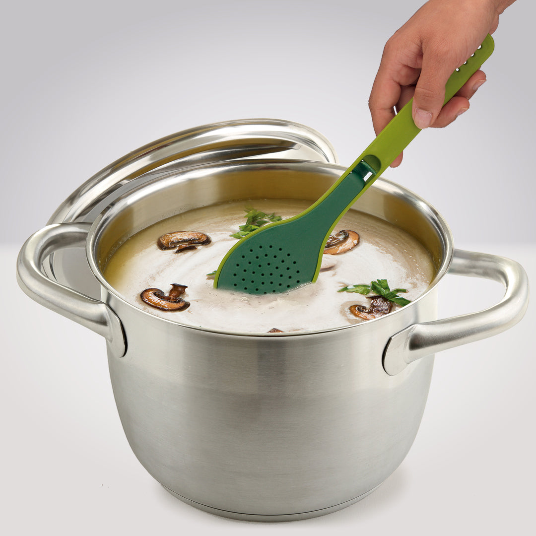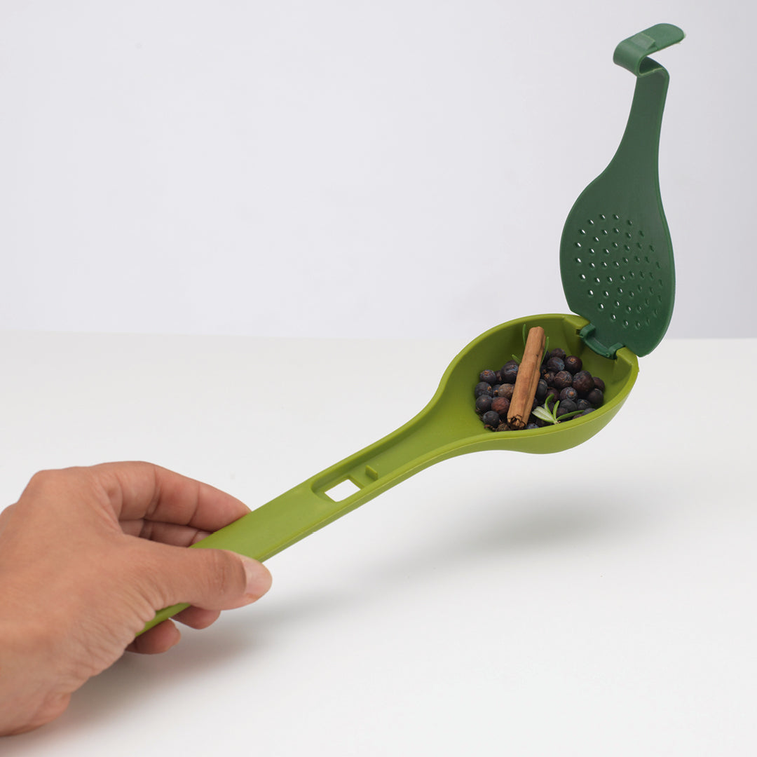Mit diesem innovativen Aromalöffel mit Kräuterstreuer verfeinern Sie Ihre Gerichte ganz einfach und natürlich. Der lebensmittelsichere Kochlöffel aus BPA-freiem Nylon ist ideal, um frische Kräuter und ganze Gewürze wie Zimtstangen, Kardamom oder Sternanis beim Kochen gezielt einzusetzen – ohne störende Rückstände im Teller. Einfach die Gewürze in die integrierte Aromakammer füllen, den Deckel schließen und beim Kochen einrühren. So entfalten sich die Aromen perfekt – ohne sie später wieder herausfischen zu müssen.