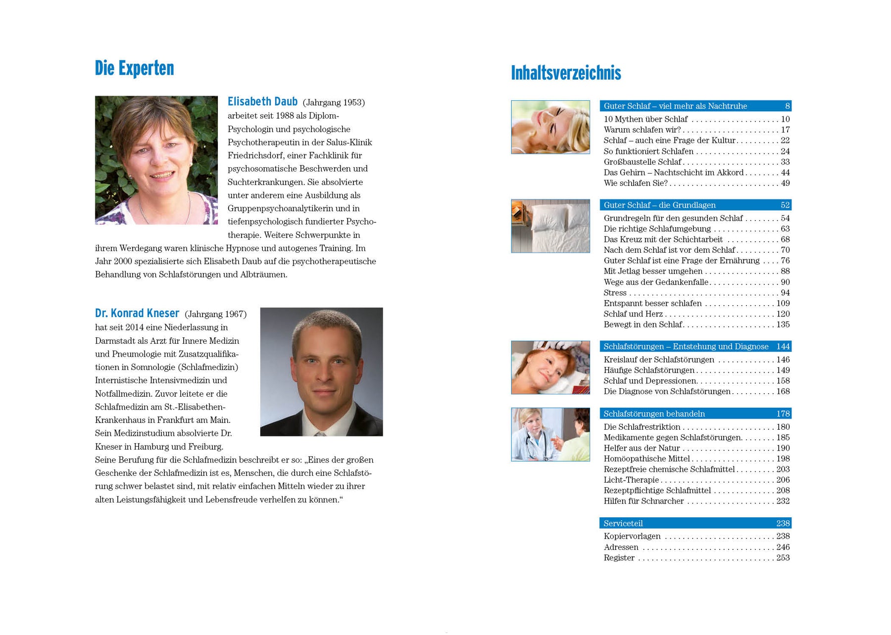 Unterstützt durch das Fachwissen zweier anerkannter Schlafexperten – Dr. Konrad Kneser (Schlafmediziner) und Elisabeth Daub (Psychotherapeutin) – liefert dieses Buch verlässliche Informationen über natürliche Methoden ebenso wie über schulmedizinische Behandlungswege.
