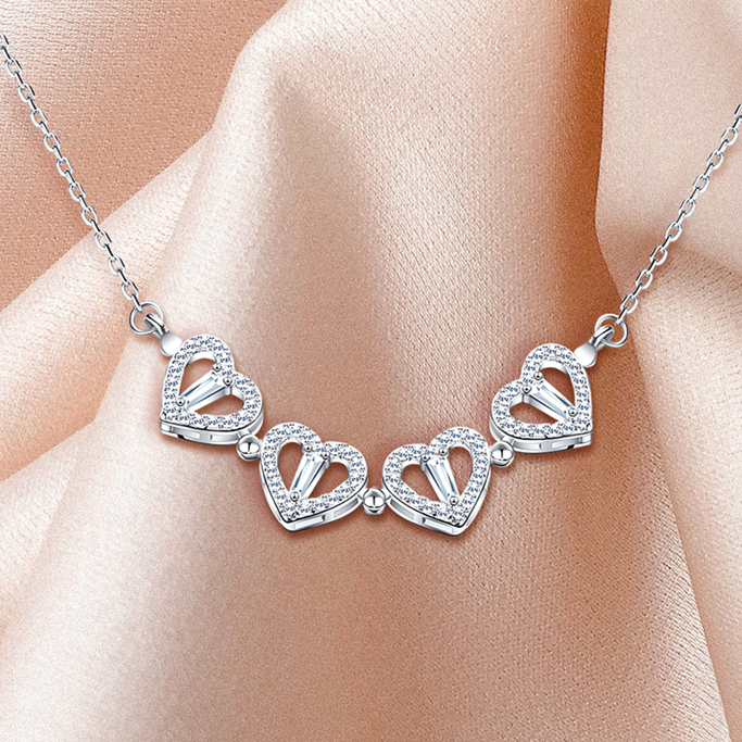 Diese edle Kette mit Herzanhänger vereint zwei emotionale Botschaften in einem raffinierten Design: ein vierblättriges Kleeblatt für Glück – und vier ineinandergreifende Herzen als Zeichen der Liebe. Dank cleverer Magnetfunktion lässt sich der Anhänger mühelos verwandeln – ganz nach Stimmung oder Anlass. Geschlossen als Kleeblatt begleitet Sie ein stilvoller Glücksbringer durch den Tag. Geöffnet entsteht ein eleganter Herzanhänger, der sich sanft an Ihr Dekolleté schmiegt.