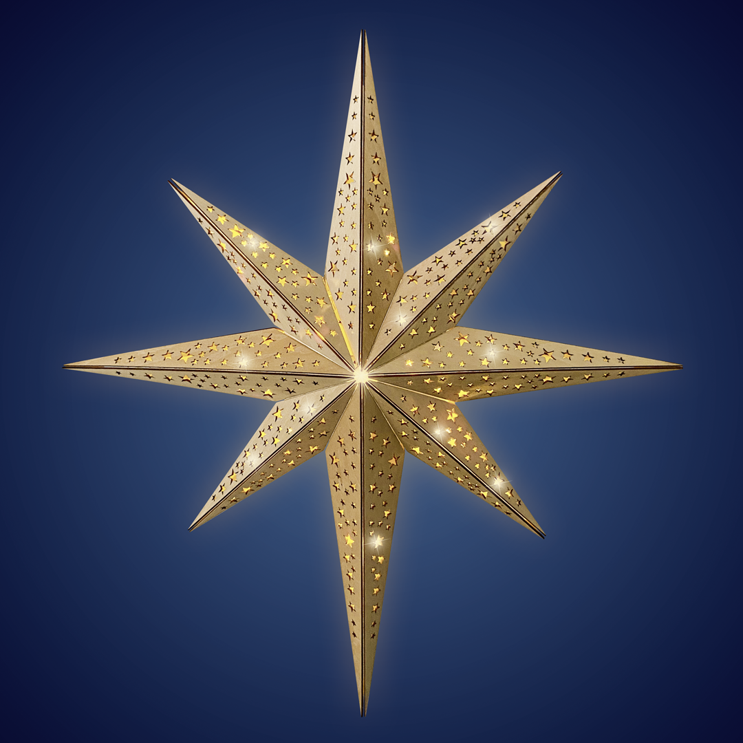Der Stern ist nicht nur ein optisches Highlight, sondern auch funktional durchdacht: platzsparend zusammenfaltbar, einfach aufzuhängen und sofort einsatzbereit – inklusive Batterien. Ideal für Fenster, Türen oder als stilvolle Hängedekoration im Raum.