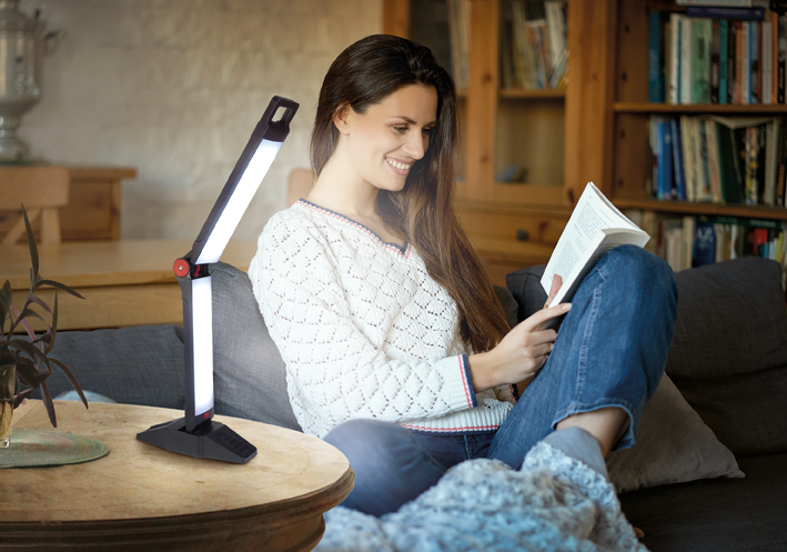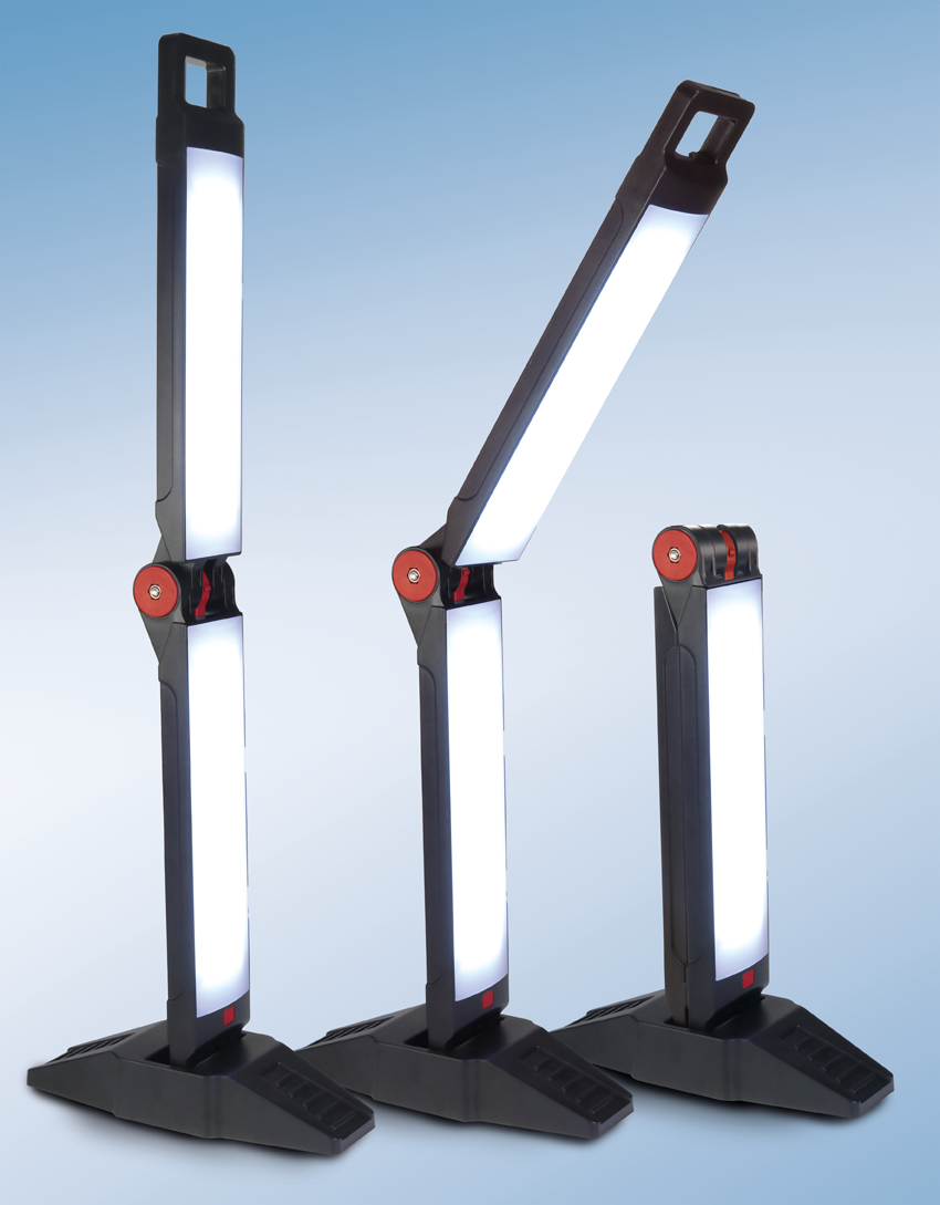 Wenn Sie die beispielhafte Leuchte einmal nicht benötigen, können Sie diese ganz einfach platzsparend zusam-menklappen. Der perfekte Helfer!