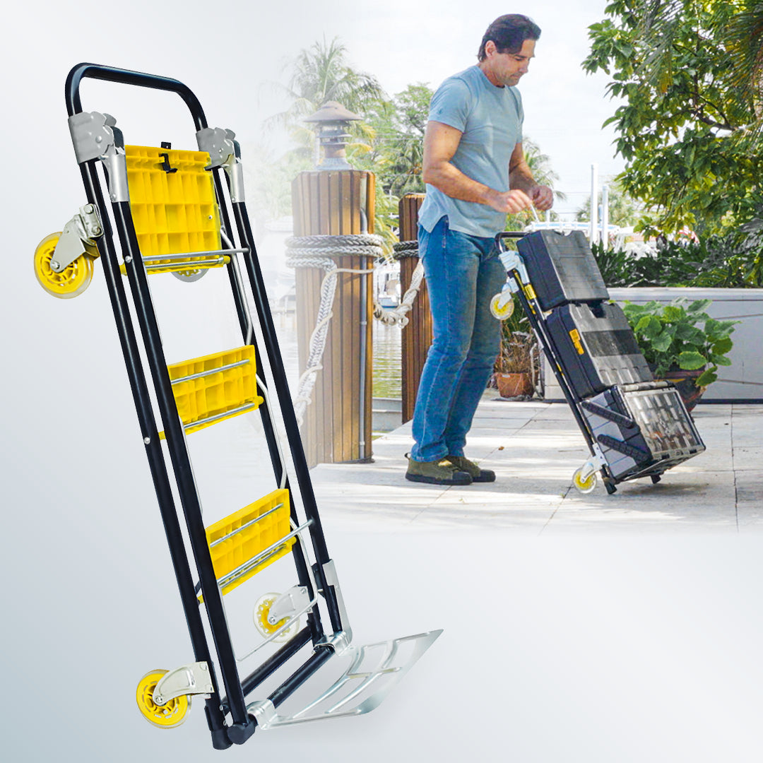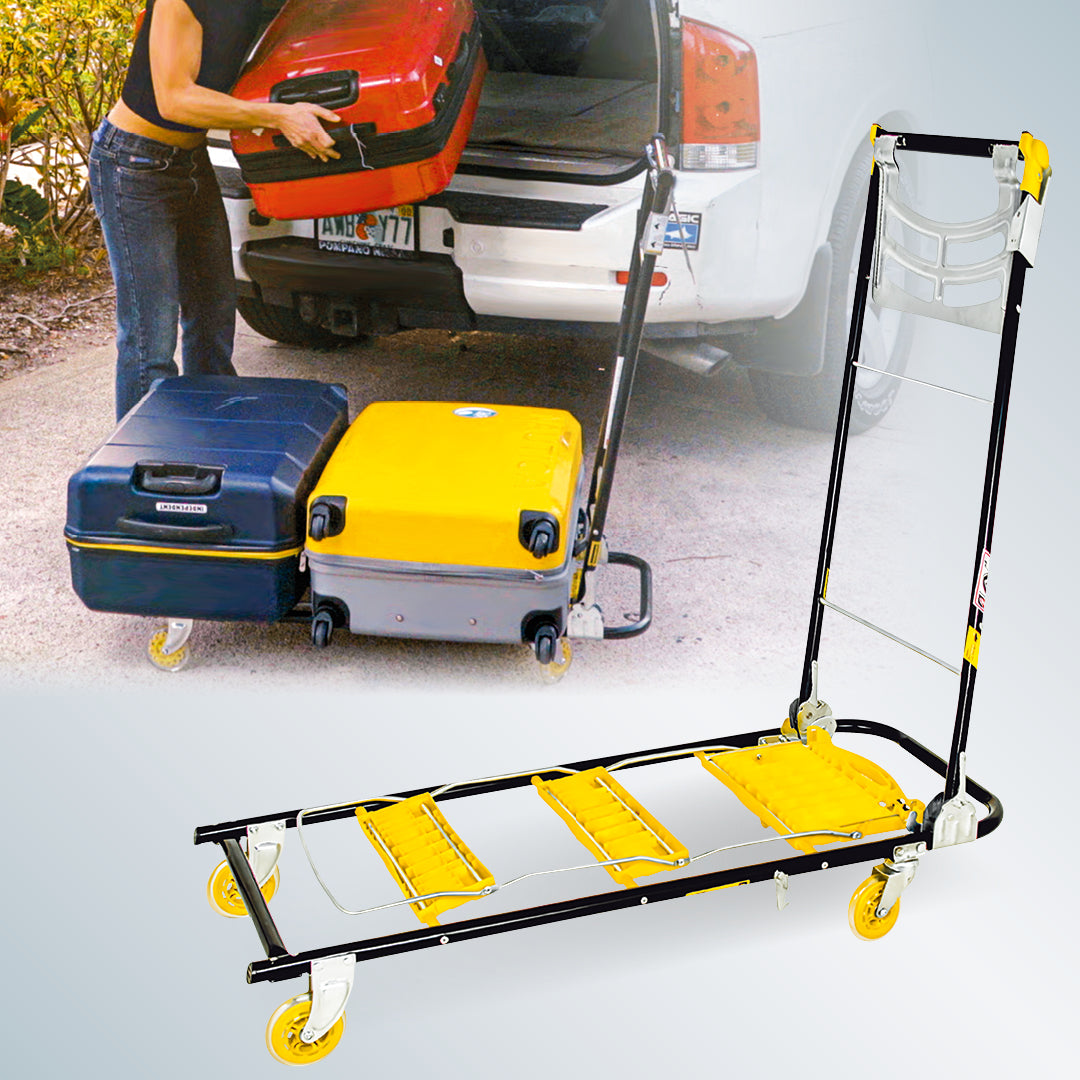 • Vielseitig einsetzbar: als Bockleiter, Sackkarre, Transport- oder Rollwagen