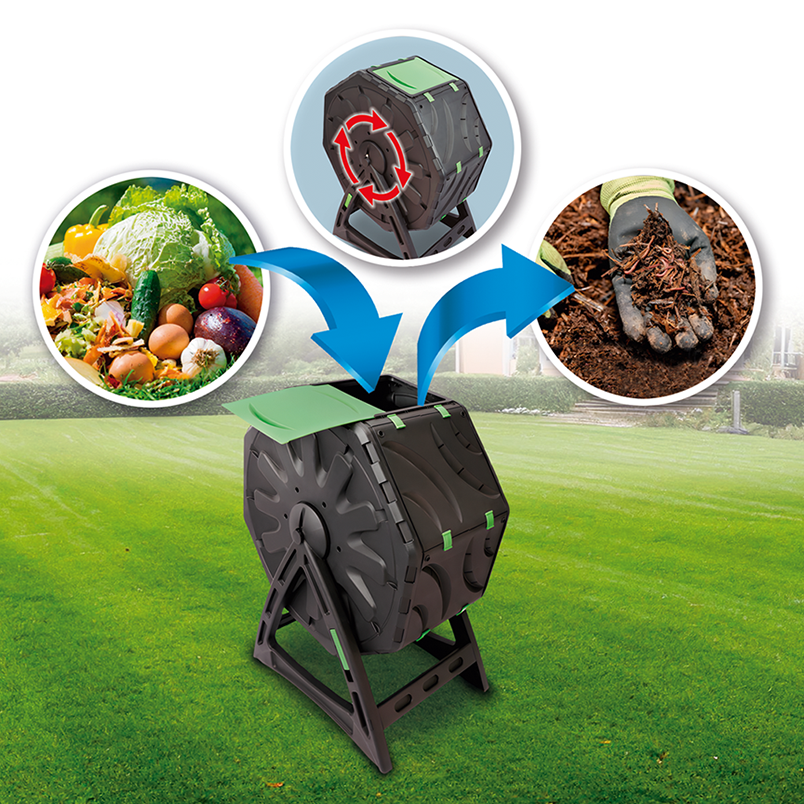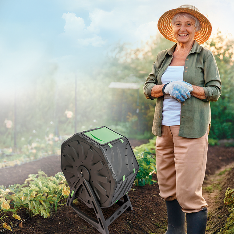 Befüllen Sie die Trommel einfach mit organischen Abfällen, drehen Sie sie regelmäßig, und schon nach kurzer Zeit entsteht fruchtbare Pflanzerde. Durch die optimale Sauerstoffzufuhr wird die Zersetzung beschleunigt, und das Ergebnis lässt nicht lange auf sich warten.