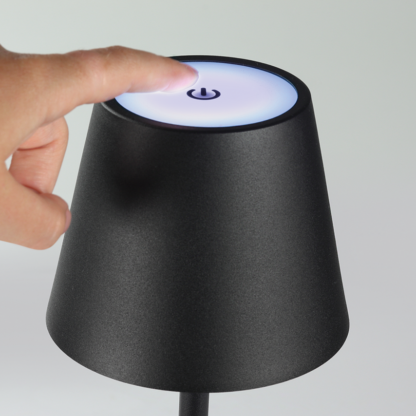 Die mattschwarze LED-Tischlampe mit rutschfestem Sockel ist eine schöne Lichtquelle für jedes Wohn-Ambiente. Dank eingebauter, aufladbarer 3600-mAh-Batterie funktioniert sie ohne Kabel und bietet 8 Stunden Leuchtdauer. Das mitgelieferte USB-Kabel sorgt dafür, dass die Batterie schnell wieder aufgeladen ist. Durch das schnurlose Design ist die »Deco Light«-Tischlampe überall schnell zu platzieren: im Wohnzimmer, auf dem Nachttisch, im Büro oder auf dem Balkon – wo immer Sie »Lichtblicke« genießen möchten. Durch Berührung des Schirms schalten Sie die blendfreie Lampe ein und regulieren Helligkeit und Lichtfarbe. Ein Blickfang für jede Wohnung!
