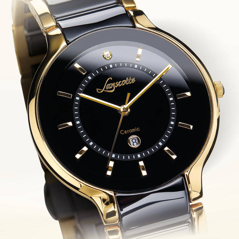 Lanscotte »Finesse« – Herrenuhr aus schwarzer Keramik mit Diamant