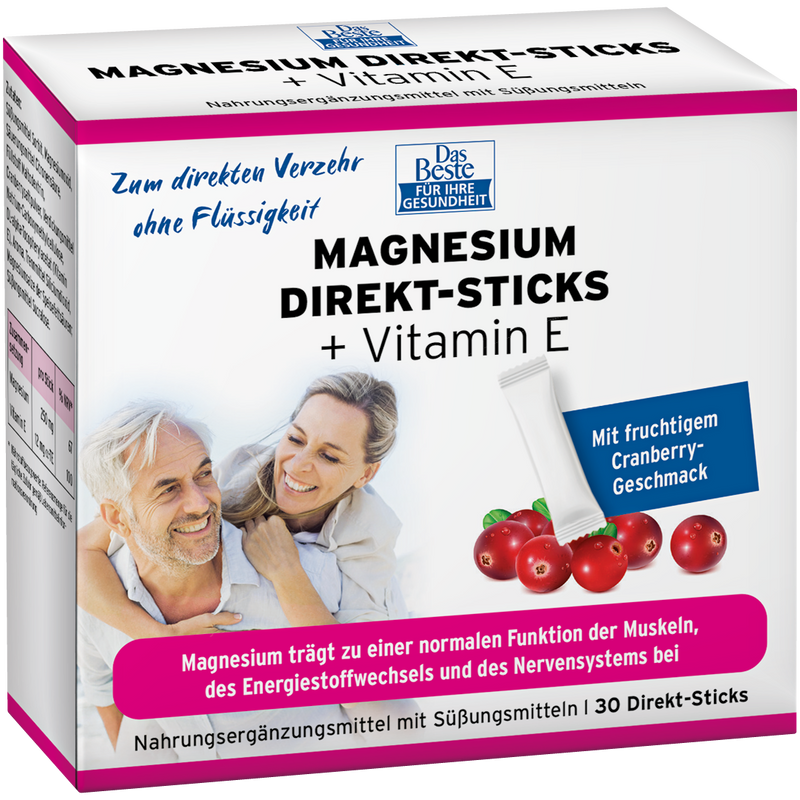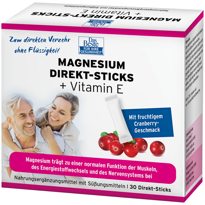 Magnesium ist essenziell für die normale Funktion von Muskeln, Nerven und den Energiestoffwechsel. Die Magnesium Direkt-Sticks bieten eine besonders einfache und schnelle Möglichkeit, den Körper mit diesem wichtigen Mineralstoff zu versorgen – ganz ohne Wasser! Einfach auf die Zunge geben, zergehen lassen und sofort profitieren.
