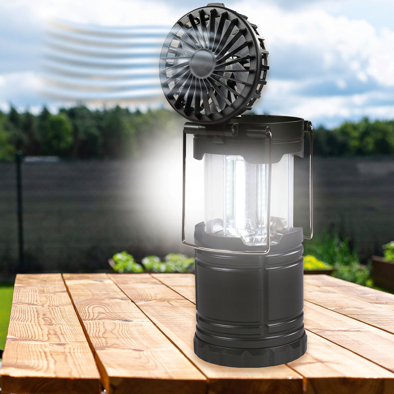 Tragbare LED-Leuchte mit Ventilator für unterwegs