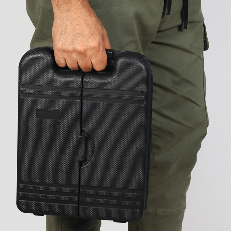 • Übersichtliche Aufbewahrung im stabilen Kunststoffkoffer